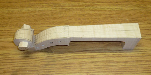 I cut out the rough outline of the neck last week, but didn't get to the scroll part until