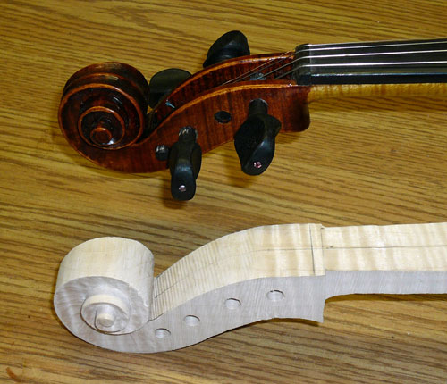 outside of the scroll and drill out the pegbox. If that goes well, I may get to sanding the