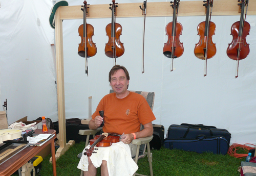 Last year I attended the Goderich Celtic Festival thanks to Jayne's membership in the Oakville Celtic Fiddle Club. I was very impressed with both the music and the artisans. I applied for an exhibit booth, and was accepted. As it turned out, I was given a prime location by accident. I took my instruments numbers 2, 3, 4, and 5, as well as the body and neck of Number 6. I also took 3 of my father's instruments.