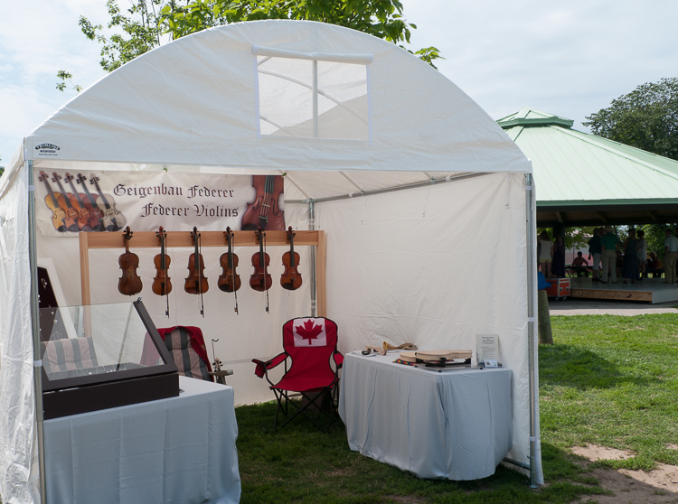 We arrived in Goderich Thursday afternoon and had the booth set up by mid-evening. Friday was quite busy, with many artists and College participants coming by and playing the instruments. The Pyramid violin was particularly intriguing to many people. Saturday was a bit slower, but with steady traffic all day. Sunday was variable, with a quiet afternoon but flurries of activity.
