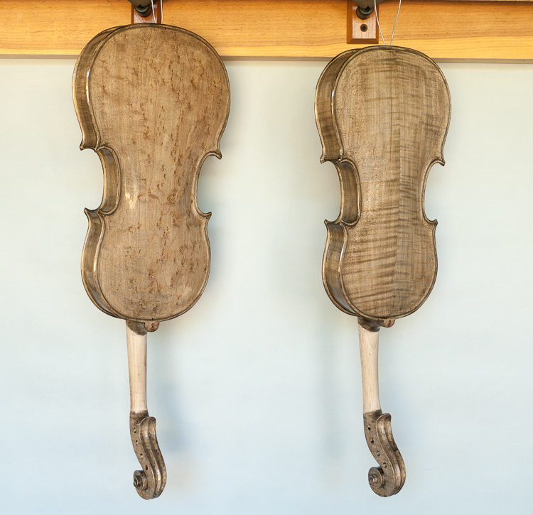 Today was a fair and warm day, so I took off in mid afternoon from my paying work to apply the third coat of varnish. I sanded again with 400 and 600 grit paper, then a final pass with a plastic scrubber pad. I also added more black oil paint and thoroughly mixed the varnish. The colour is now noticeably darkening.