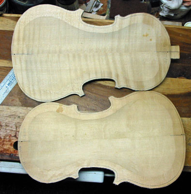 The top and back plates have been cut out using a bandsaw, being very careful not to cut off the tab on the back plate.