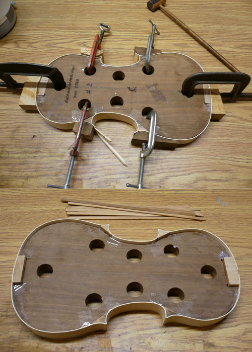 With Kate's help, I glued the remaining ribs onto the form. The joint in the lower