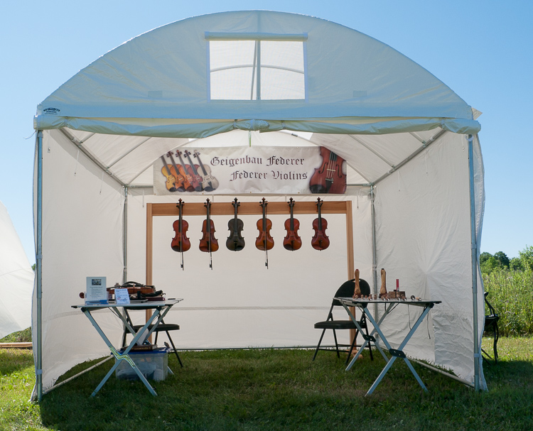 with comments and suggestions. Renfrew Art in the Park - 13 & 14 July 2013 It was hot both days, but there were many visitors and lots of good questions. I think of events like this as "planting the seeds". Results will take an unknown time to show. Goderich Celtic Roots Festival 2013 We are back from the Goderich Celtic Roots Festival, 21st Anniversary Edition! The weather was ideal, although a bit cool in the evenings. We had many people playing our instruments, particularly on Friday. The Pyramid violin attracted lots of attention. Josh and Jessica House of House Guitars were near us again. We also enjoyed visiting with Peter Cox. As always, the music was excellent, and it was a thrill to hear our instruments played by such fine musicians. March 2014 - Back to Work After a long cold winter, I am finally back in the shop. I am aiming to have both fiddles at least "in the white" by July for Art in the Park. Renfrew Art in the Park 2014 Renfrew Art in the Park 2014 was a success! The weather co-operated apart from some rain Sunday morning. Even that didn't stop the visitors. Traffic was steady all weekend. It was a great way of raising my profile in the area communities! Goderich Celtic Roots Festival 2014 This year's Festival had perfect weather, but fewer attenders. We still had consistent traffic all three days. Since only Kate and I were there the entire time we didn't get to take in as much of the music as in previous years. However, we had talented musicians play our instruments, so in a way we had private concerts throughout the weekend. Goderich Celtic Roots Festival 2015 I have again been accepted to exhibit at this year's Festival. It takes place August 7-9th, Friday to Sunday. The Sinister is ready, just waiting for a new owner to specify the varnish colour. Ashley's will be ready for her to play, but may not be fully varnished. I hope to see you there. Goderich Celtic Roots Festival Report This year's festival was lower-key than in years past. It was the 23rd, so I think people are planning for a bigger and richer event in the next two years. We will be taking a hiatus in 2016, hopefully returning for the 25th anniversary Festival in 2017. Renfrew Art in the Park 2016 This will be my only public show this year. It will take place 16-17 July at Haramis Park. See http://renfrewartguild.com/artinthepark/ for details. Update: Art in the Park was successful, in that there was a steady flow of people. One young lady played two of the instruments, doing a professional-level rendition of part of Tchaikovsky's Violin Concerto. I guess her to be about 12. I had many positive comments, and a few people took my information. Goderich Celtic Roots Festival 25th Anniversary This is the big celebration! Reserve 11-13 August to see us in Lions Gate Park in Goderich. As in previous years, we will have a selection of violins as well as Kate's display of fine silver jewellery. We are making many of our instruments much more attractively priced, come and pick up a bargain! |